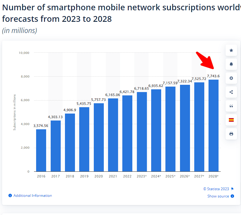 Did you know that the number of smartphone mobile users worldwide reached almost 6.7 billion in 2023 and is expected to reach over 7.7 billion by 2028?